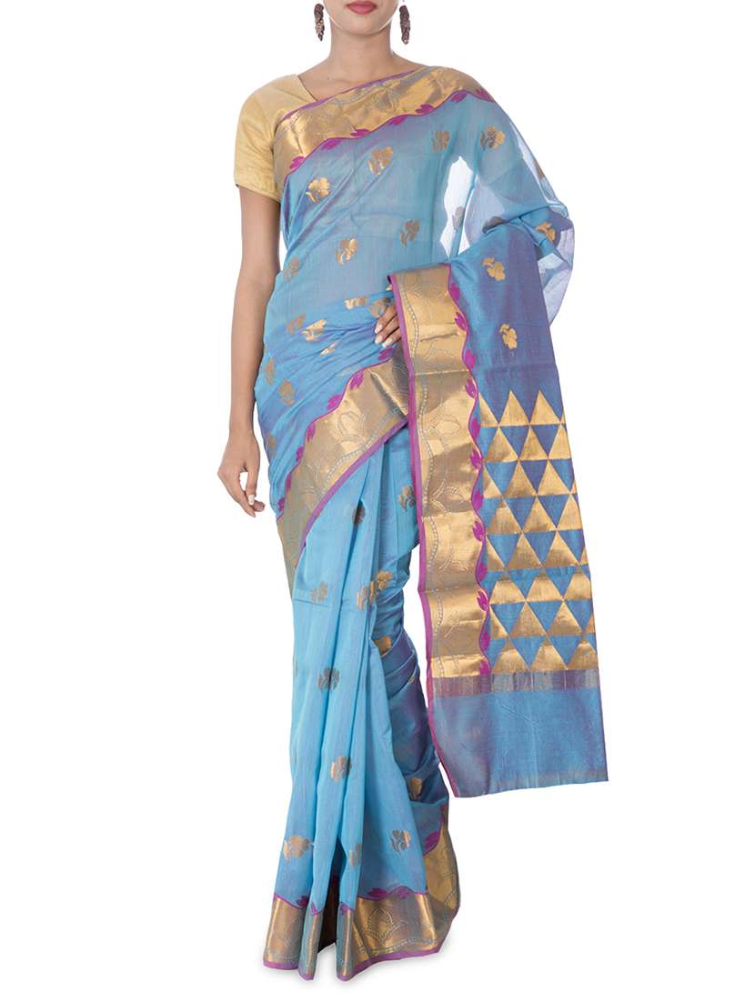 #1 blue cotton brocade saree & similar products...