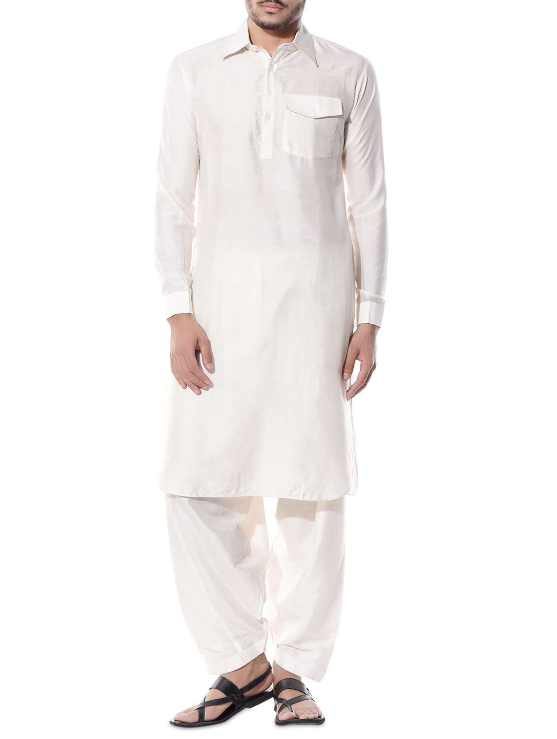 #2 white solid silk pathani kurta & similar products...