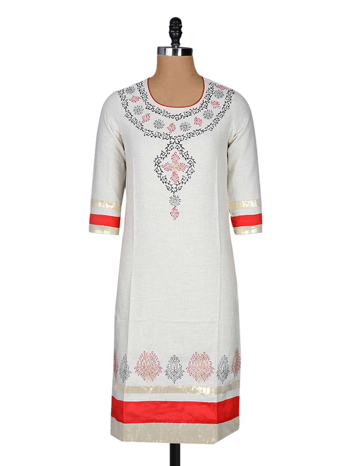 #1 round neck block printed khadi cotton kurta & similar products...