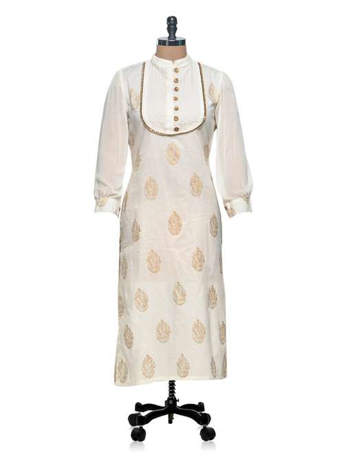 #1 gold print with embroidered yoke long kurta & similar products...
