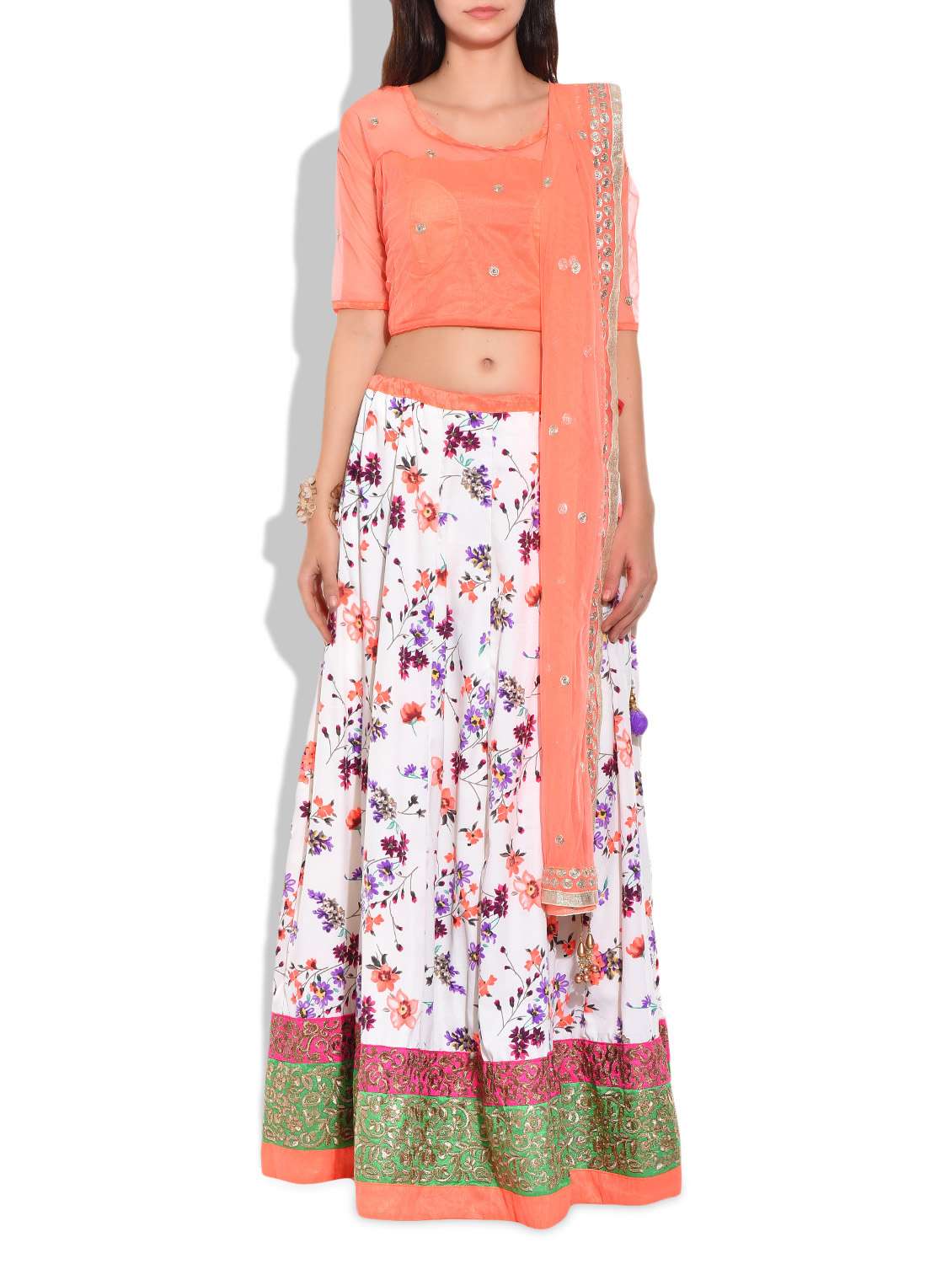#1 multi colored poly crepe lehenga & similar products...