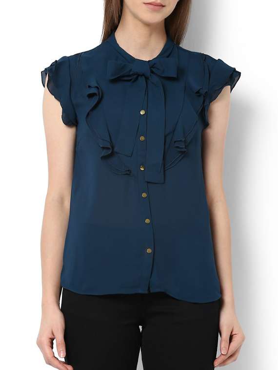 #2 ruffle detail tie knot neck shirt & similar products...