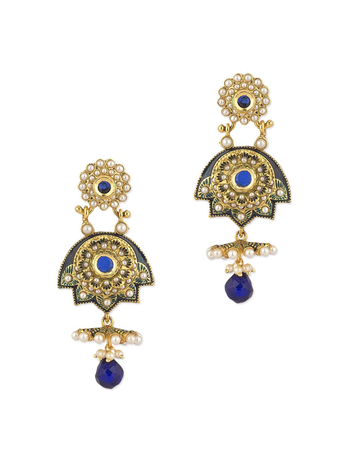 #2 Gold Plated Traditional Floral Dangles With Blue Colour Stones And Beaded Pearls & similar products...