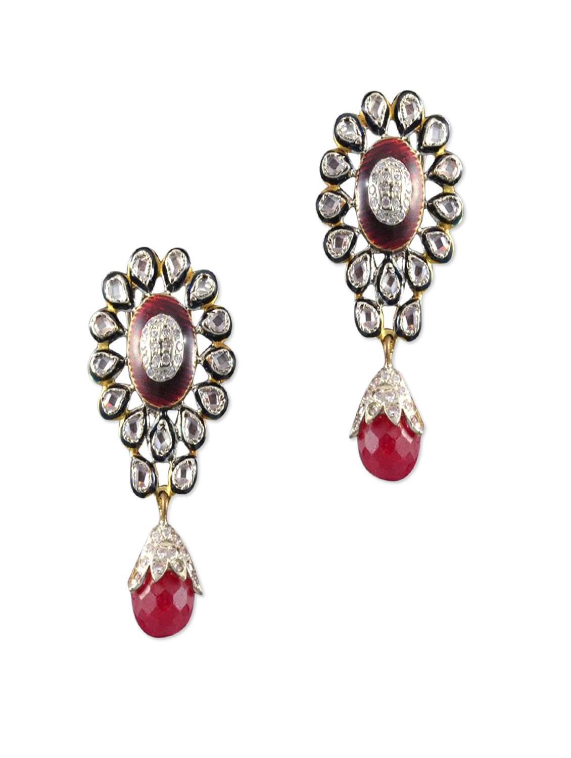 #3 white and ruby red crystal embellished earrings & similar products...