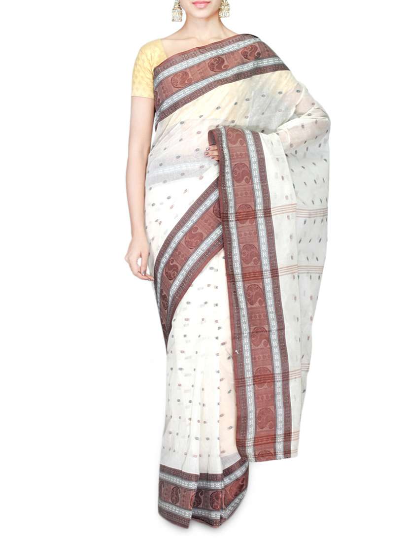 #1 white Cotton Tant Handloom Saree & similar products...