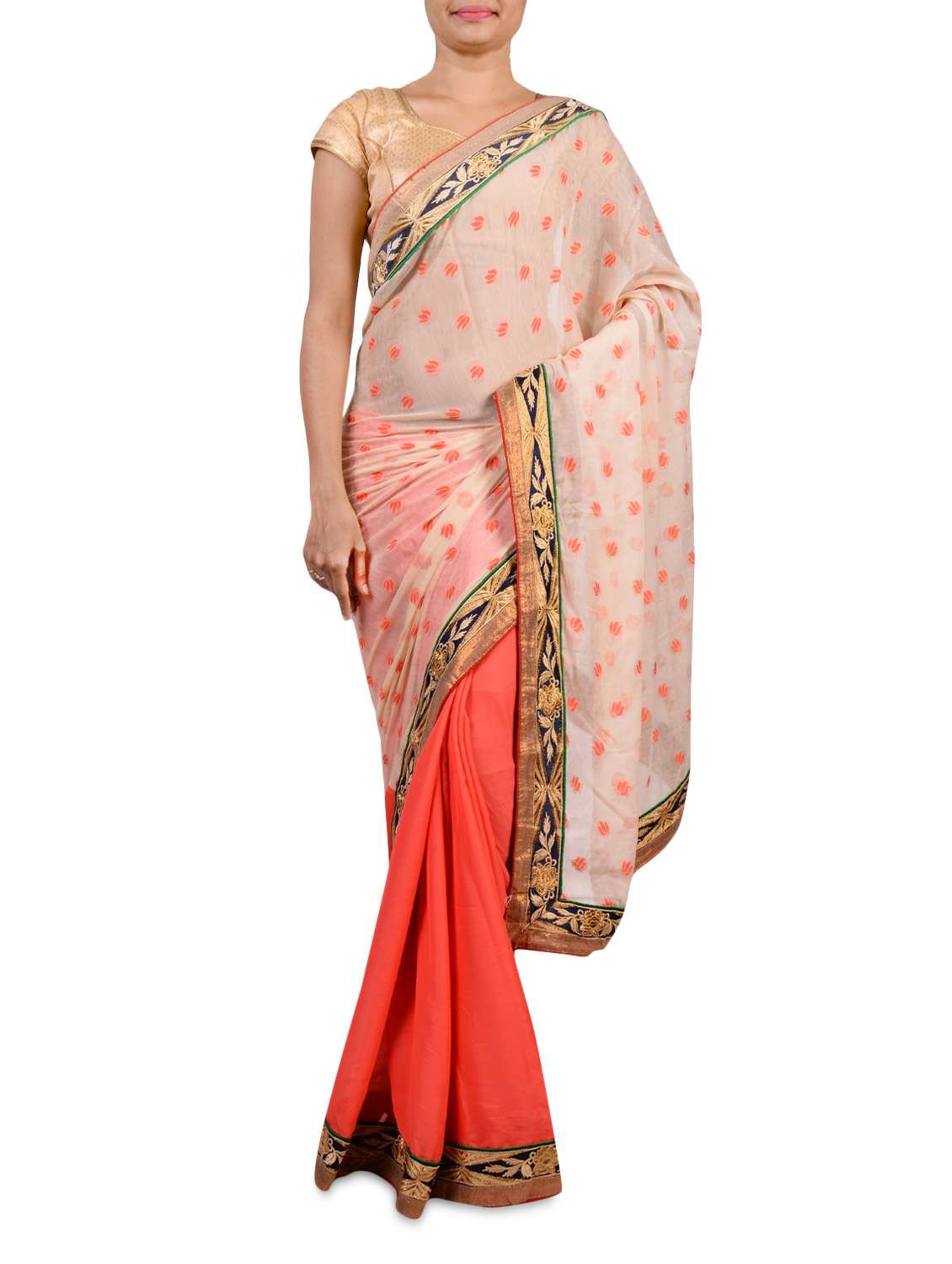 #1 cream and orange embroidered georgette saree & similar products...