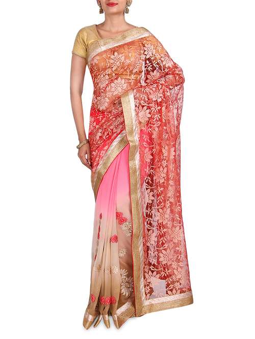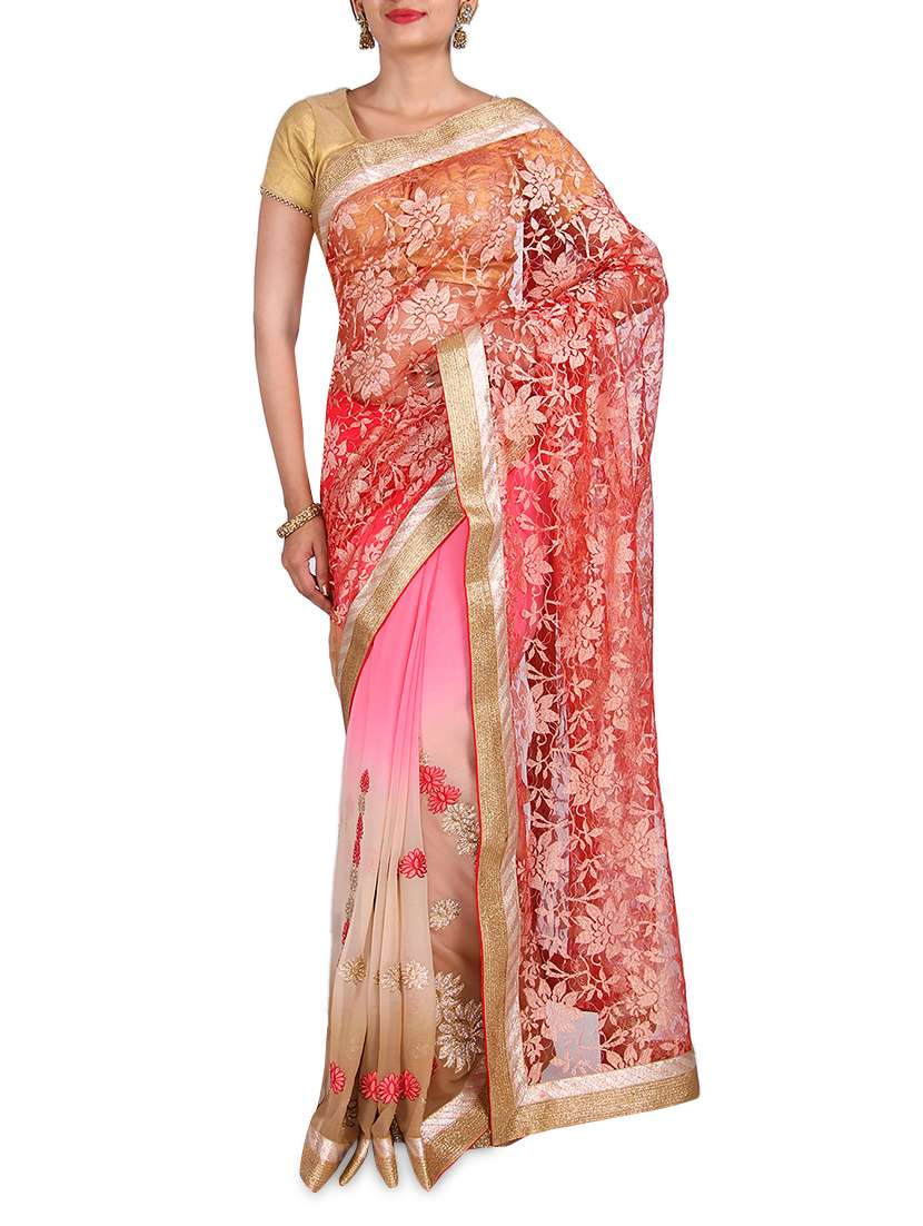 #1 white net and chiffon zari detailed saree & similar products...