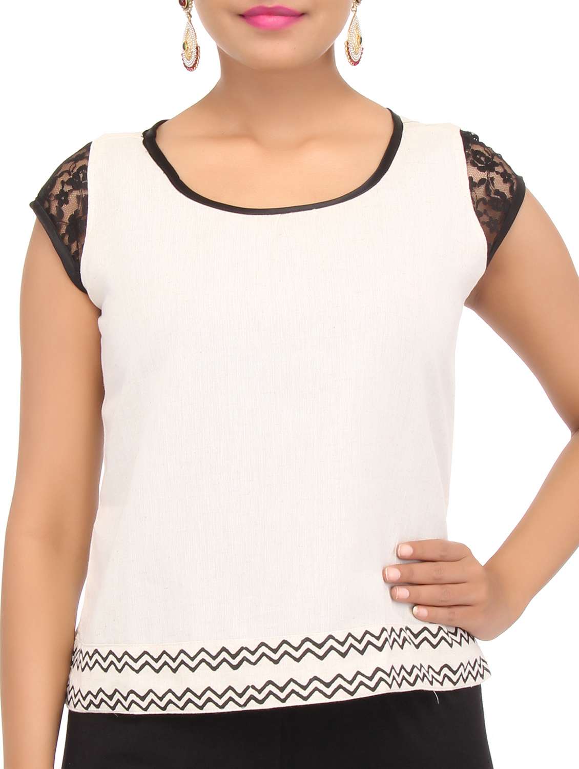 #2 white cotton crop top with lace sleeves & इसी तरह के उत्पाद...