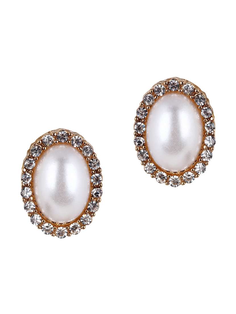 #2 white pearl & crystal embellished stud earrings & similar products...