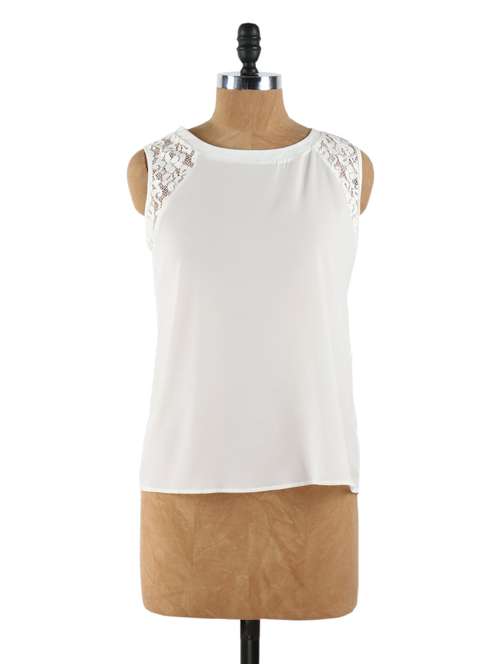 #1 White chiffon top with lace sleeves & similar products...