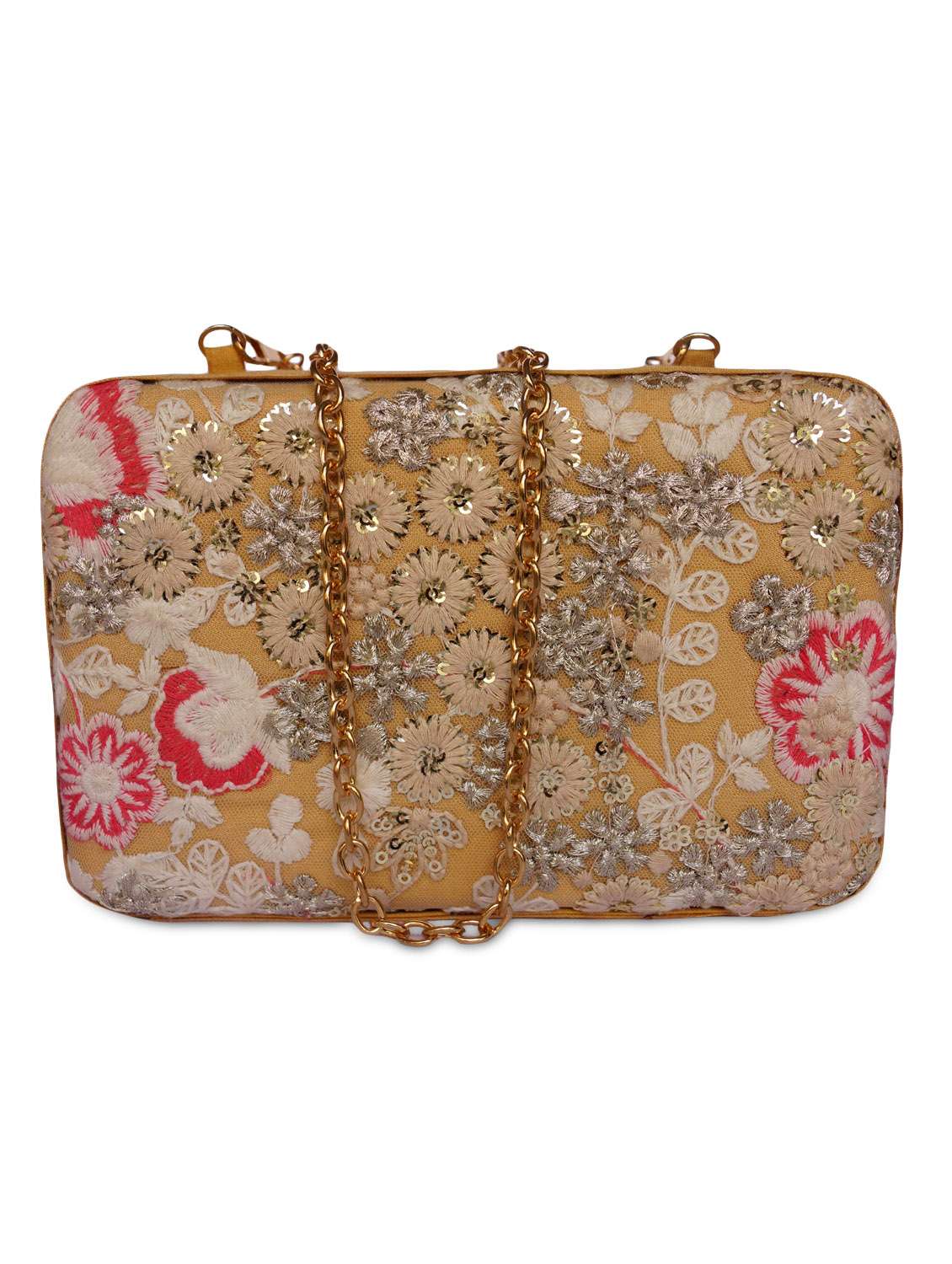 #3 beige embroidered raw silk box clutch & similar products...