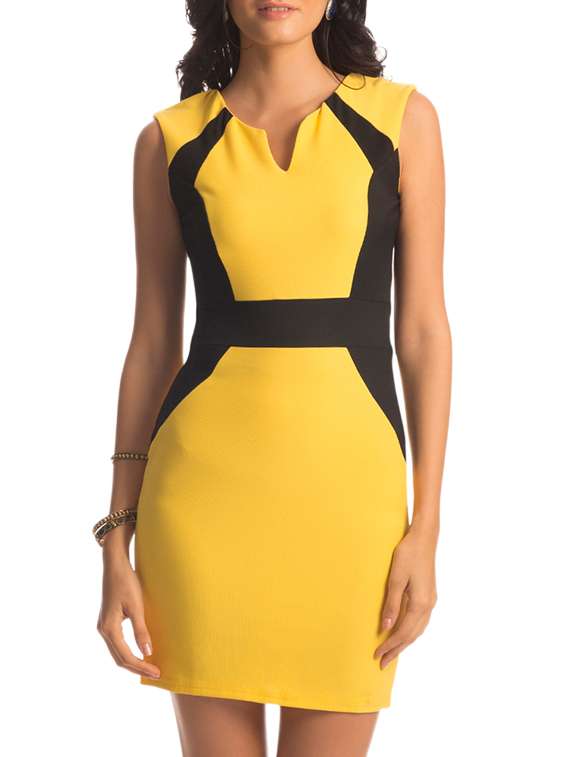 #1 yellow colour block bodycon dress & similar products...