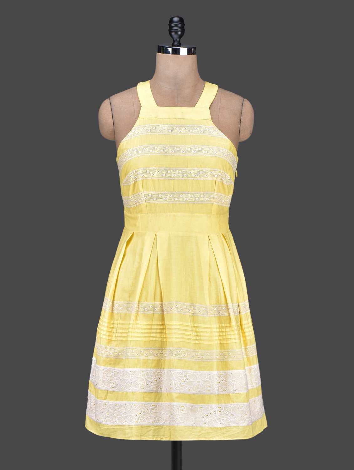 #1 lace work yellow cotton fit & flare dress & similar products...
