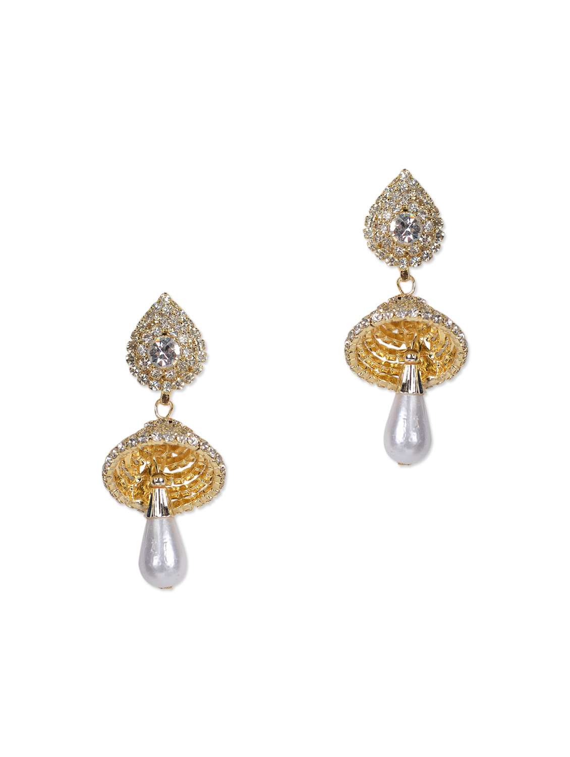 #2 breath taking cubic zirconia encrusted golden jhumki with pearl drop earings & similar products...