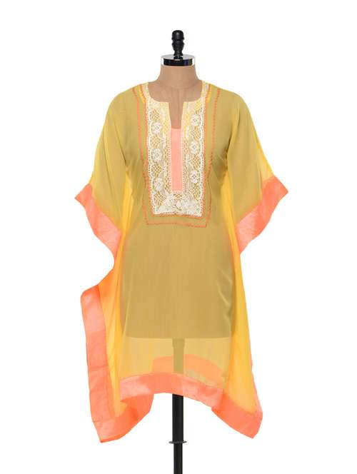 #1 silk trimmed yellow georgette kaftan & similar products...