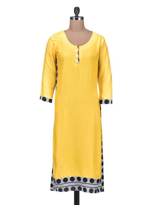 #1 yellow rayon kurta with polka dots hem & similar products...