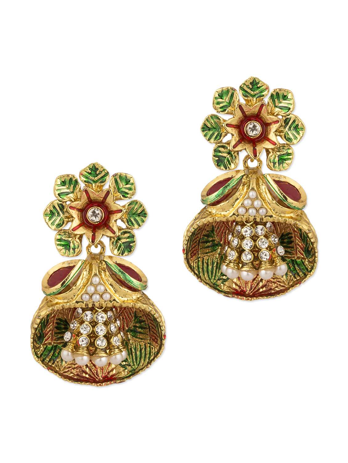 #2 Dangler Earrings With Green And Red Enamel Work & similar products...