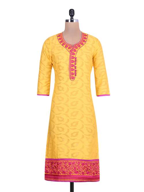 #1 yellow embroidered jacquard cotton kurta & similar products...