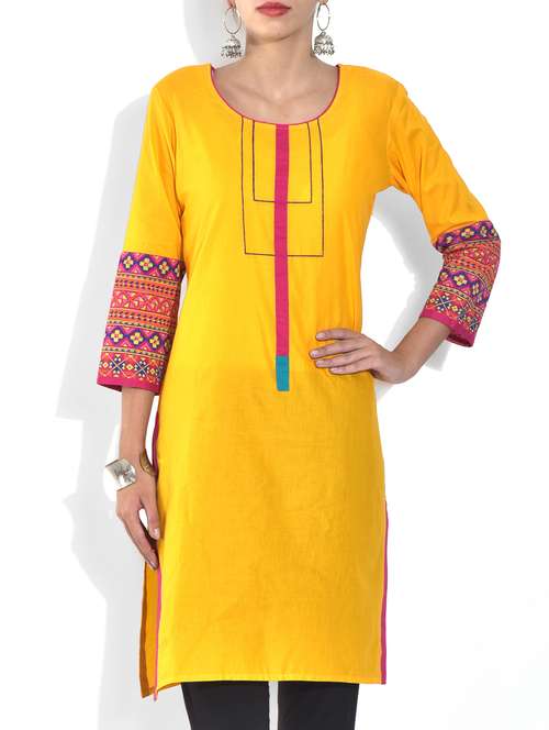 #1 yellow cambric printed three quarter sleeved straight kurta & similar products...