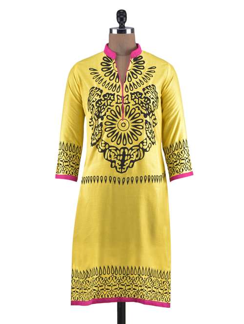 #1 yellow rayon block printed kurta & similar products...
