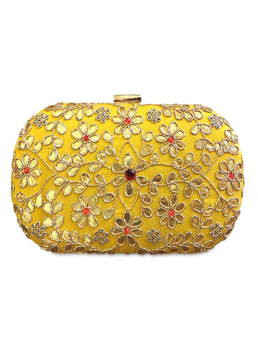 #4 raw silk zardosi work yellow clutch box & similar products...