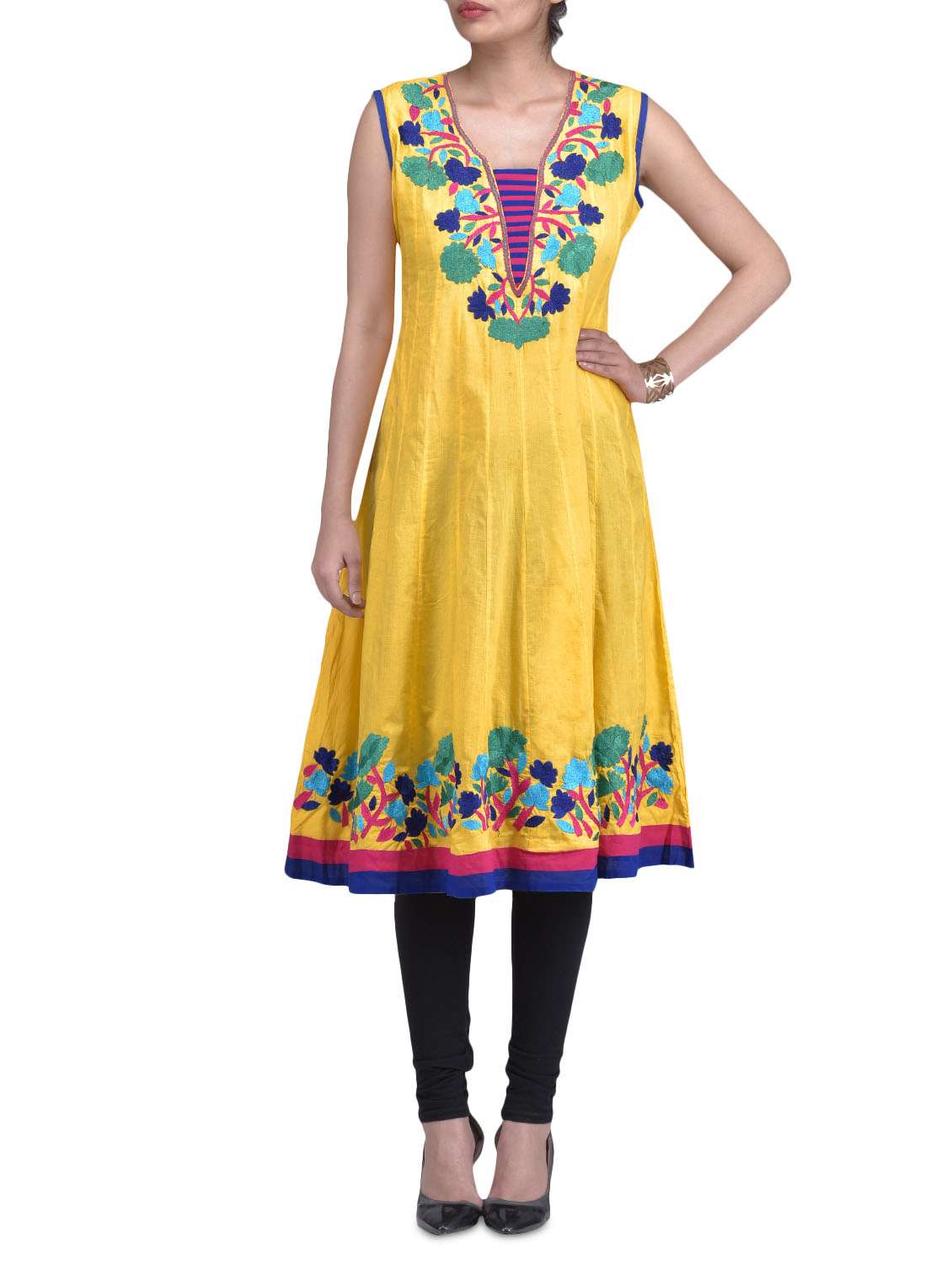 #1 yellow cotton cambric embroidered kurti & similar products...