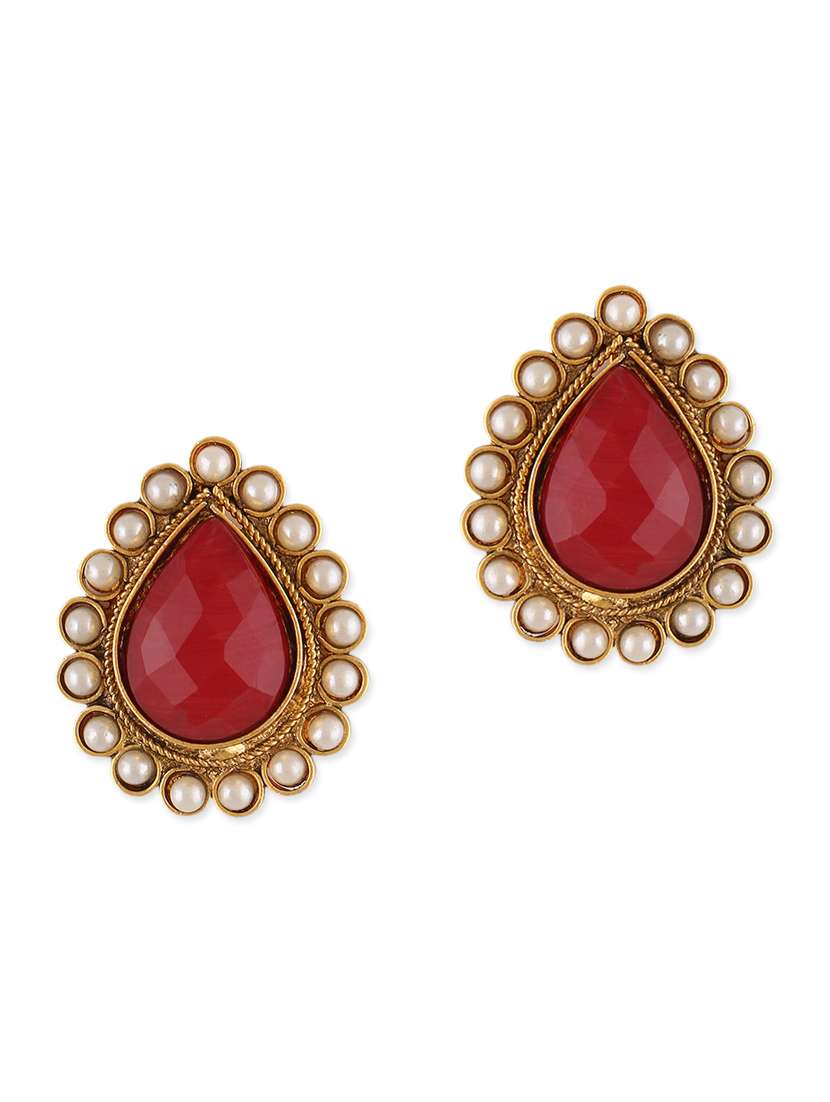 #2 red stone embellished drop shaped studs & similar products...