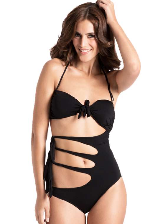 #1 neon yellow halter swimsuit with frills & similar products...