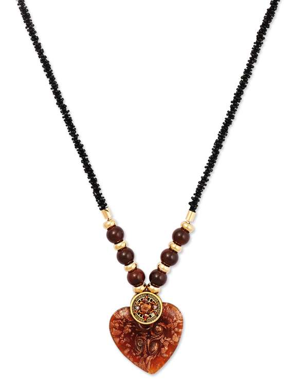 #4 black bead necklace with brown embossed heart pendant & similar products...