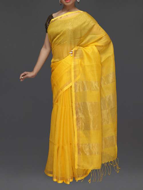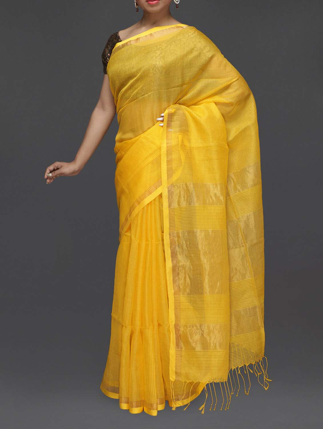 #1 yellow handloom cotton zari detailed saree & similar products...