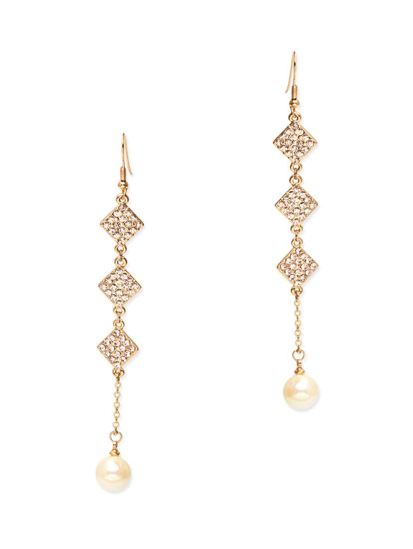 #3 champagne crystal and pearl embellished gold dangler earrings & similar products...