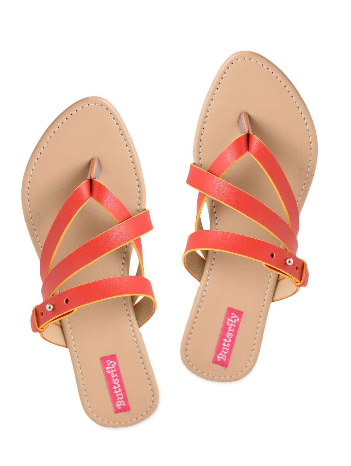 #3 red with yellow tipping straps flat slip-ons & similar products...
