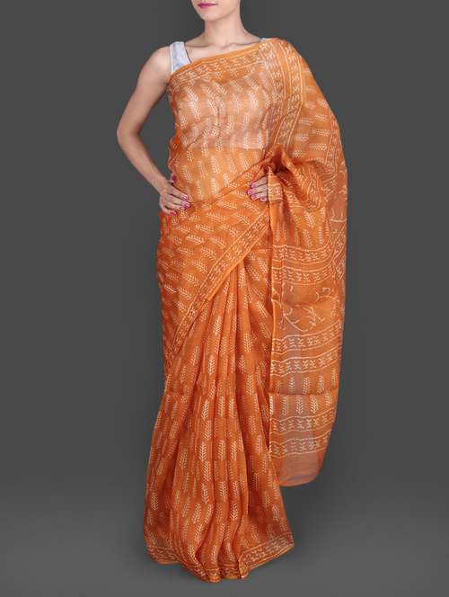 #1 orange hand block printed pure silk kota saree & similar products...