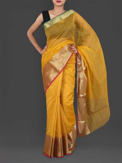 #1 yellow sheer cotton bordered saree & similar products...