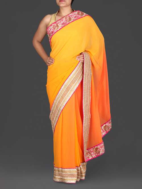 #1 Yellow And Orange Embellished Georgette Saree & similar products...