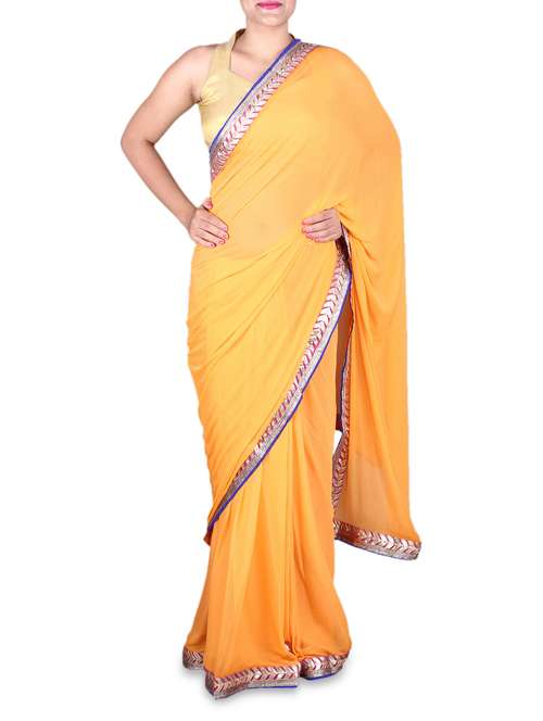 #1 yellow chiffon saree with gota border & similar products...