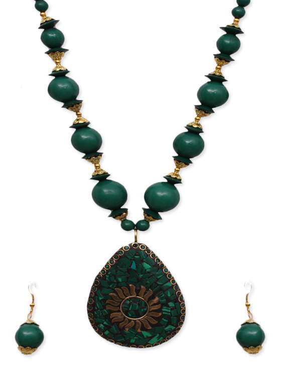 #4 green brass long necklace and earings & similar products...