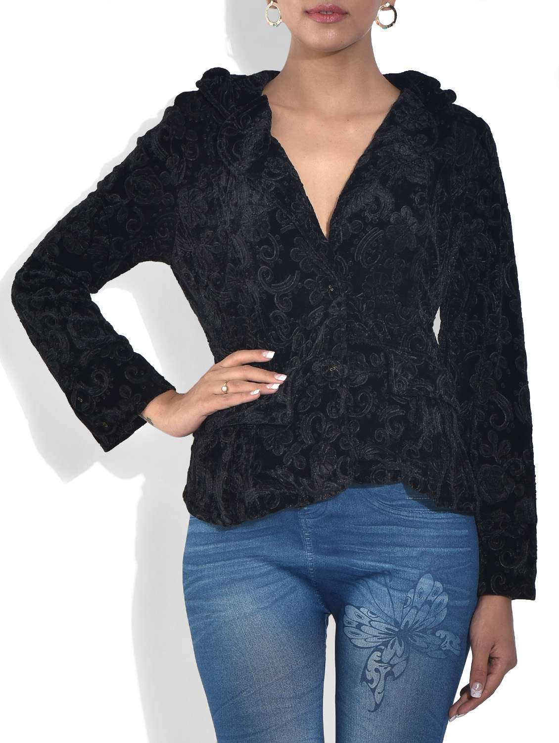 #2 black buttoned polyester jacket & similar products...