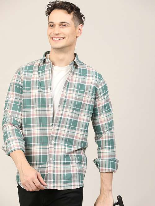- » men checkered long sleeve regular fit casual shirt