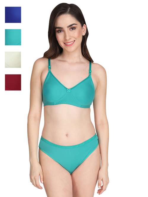 Liigne Women Everyday Padded Bra Panty Set (Pack Of 4) - This Lingerie Set Made of Pure Cotton