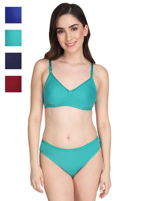 Liigne Women Everyday Padded Bra Panty Set (Pack Of 4) - This Lingerie Set Made of Pure Cotton