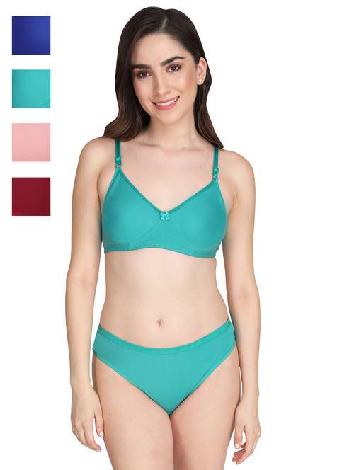 Liigne Women Everyday Padded Bra Panty Set (Pack Of 4) - This Lingerie Set Made of Pure Cotton