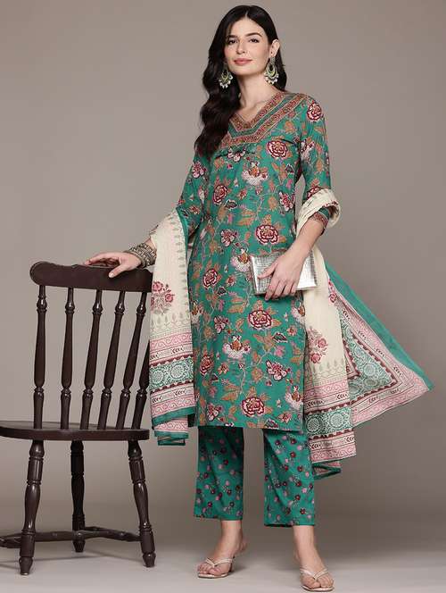- Find gorgeous sets of ethnic wears in trending designs in sea green colors suitable for festive wear of occasions.