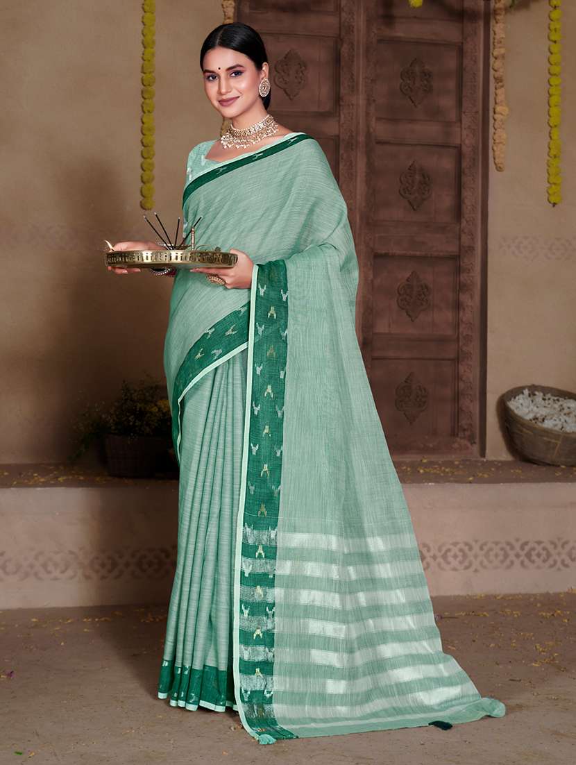 RIWAZO brings to you this saree which is made from Linen fabric and is available in attractive colours. The saree is a suitable amalgamation of style with the grace that is required from an ethnic wear. You can wear it to casual occasions as well as make it a part of your festive wear.The saree comes with a 80 cm separate blouse piece which is of the same shade as that of saree. It is unstitched and can be altered according to your desired style and fit.Pair this saree with a clutch and a pair of fashion sandals or any casual footwear of your choice for a casual look when dressing up for a party. You can also pair it with a pair of earrings and bangles when adorning this outfit for a festive occasion. RIWAZO Sarees For Women With Blouse. This Is Saree For Women. Saree Length Is 6.30 Mtr Including Blouse Piece. Blouse Is Unstitched Fabric And 0.80 Meter. This Saree Looks Beautiful In Evening Parties.