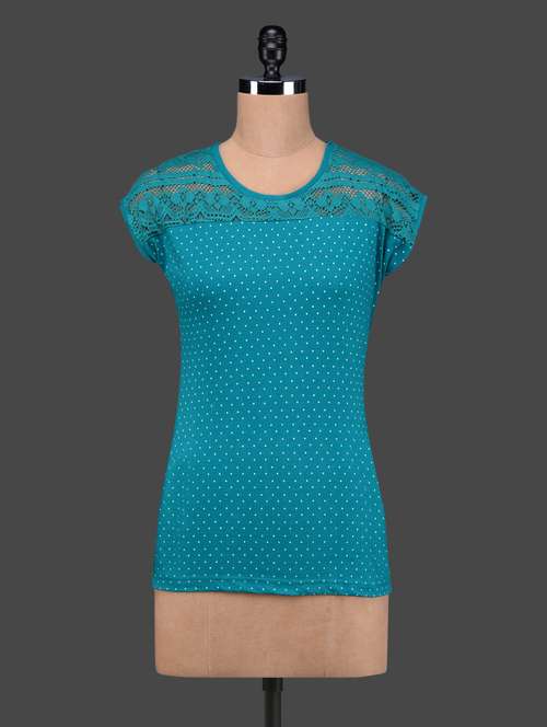 - » sea green polka dots lace yoke cotton top