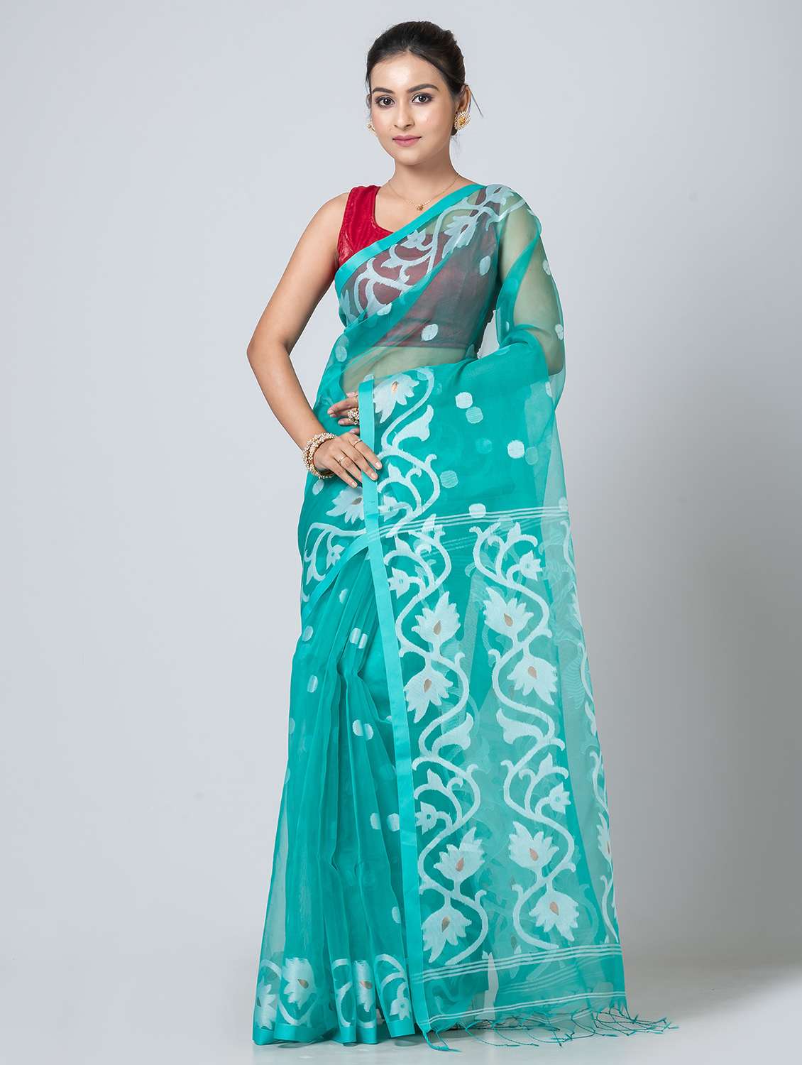 Puku resham silk and cotton jamdani work saree with running blouse fabric