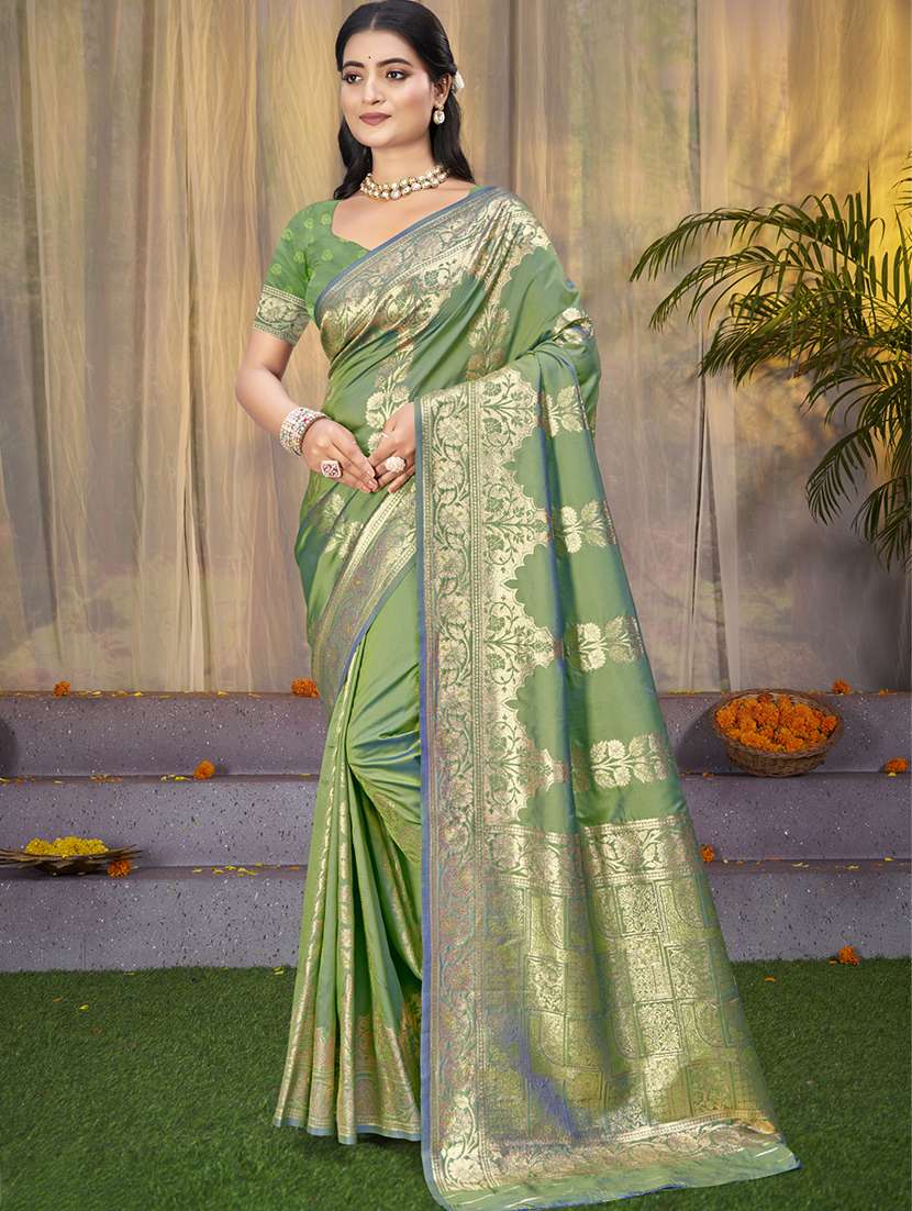 Sangam Prints Green Silk Woven Work Festival Saree