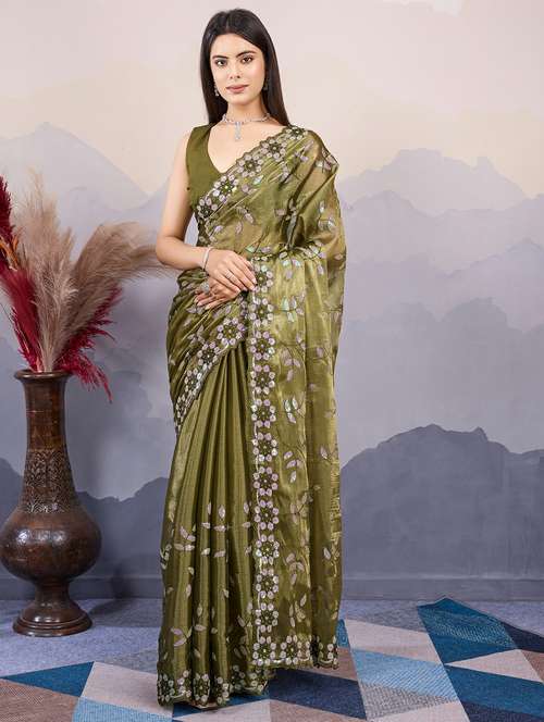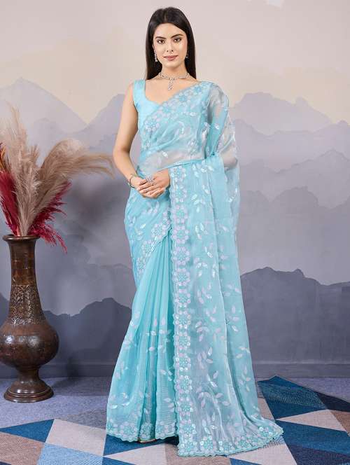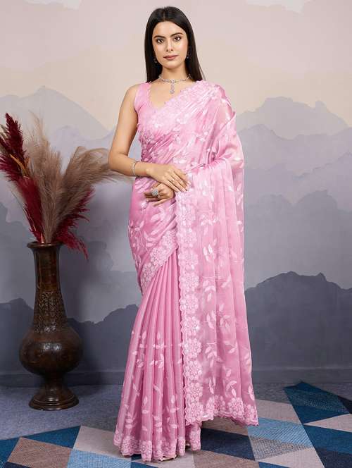 Vairagee Soft Burberry Silk Embroidery Saree & Burberry Silk Blouse