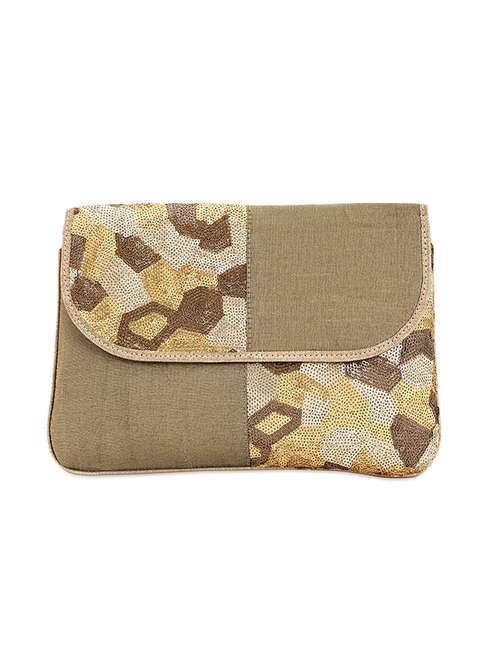 Sequin Embellished Jute Clutch