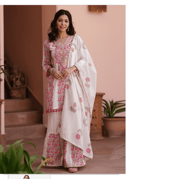 women printed kurta sharara set with dupatta